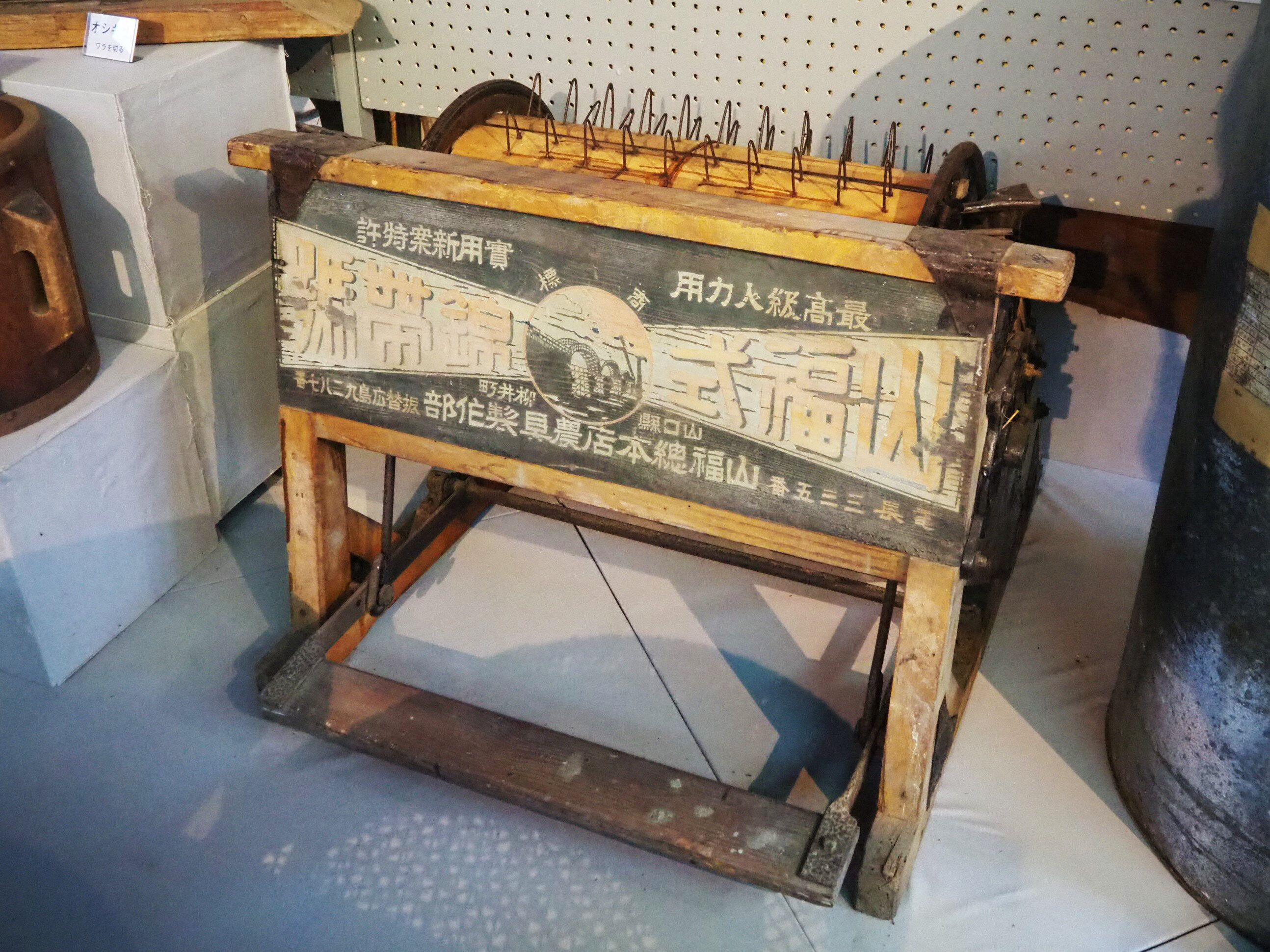 さて、以上のような農業技術改良によって、農作業の方では除草や害虫駆除に係る労力は大きく節約された。さらに大正に入ると、輪転式稲扱機(足踏み式脱穀機)が導入され、調整作業の能率も上がる(写真4)。久賀の場合、最初に輪転式稲扱機が導入されたのは1914年で、1916年には数十台に増えている。宮本は『山口県久賀町誌』のなかで次のように述べている。