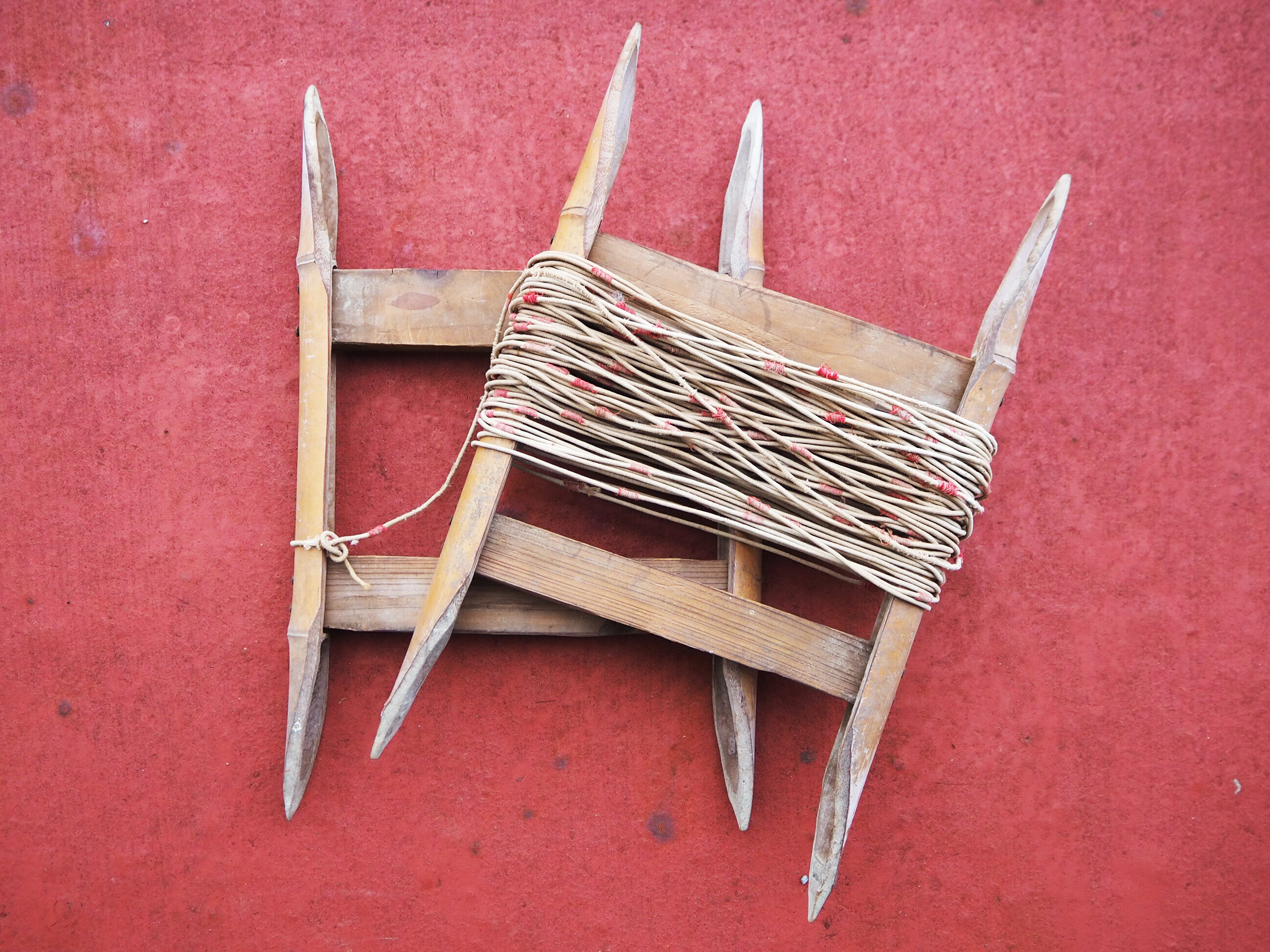 ところで、1960年代後半に慶友社では『民具辞典』の刊行が計画され、宮本は住用具と農具の項を埋めるべく執筆を進めていた。残念ながらこの計画は結局立ち消えになるが、宮本の執筆分は日本観光文化研究所の『研究紀要』4で「民具解説抄」として印刷に付されている(宮本1983)。宮本常一記念館で保管しているその原稿(文書3-3/0020/00/01/00)を確認すると、④の正条植えに使用する「ミズナワ=水縄」(写真3)については次のように書かれている。