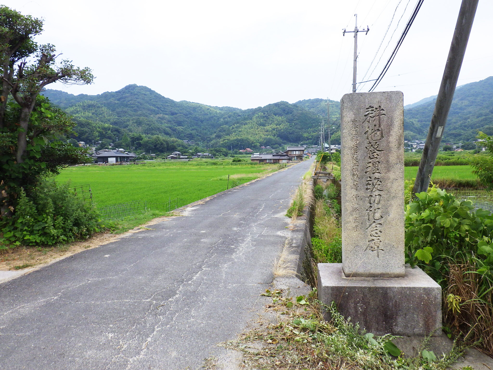 この三蒲の耕地整理を嚆矢とし、大島郡の各地では明治後期から大正前期にかけて耕地整理が推進される。1922年までに行われた郡内耕地整理の面積は373町、そのうち屋代・小松連合による小田・和田・中田・手崎の整理は91町余りに及ぶ広大なものだった。いま小田口には「耕地整理竣功記念碑」が立っている(写真2)。そこには次のように刻まれている。